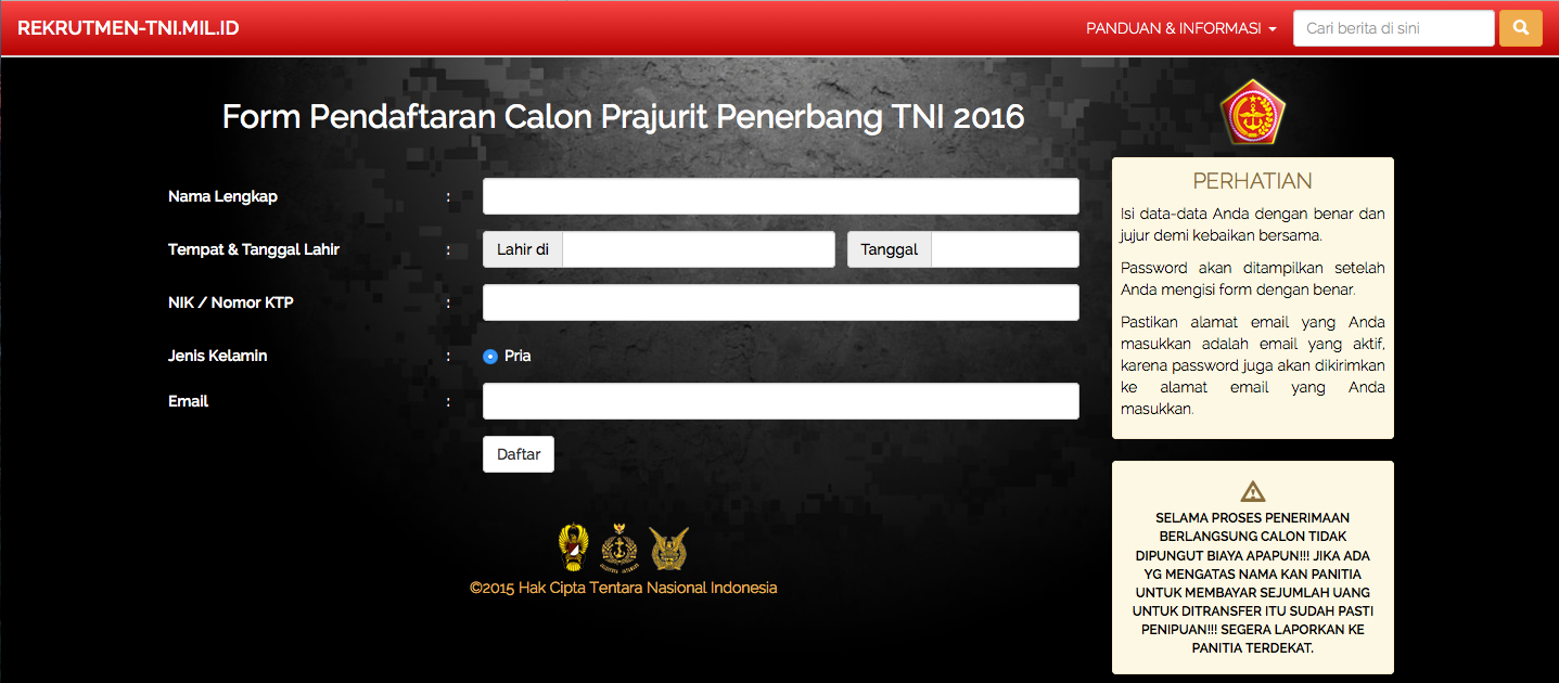 Nah untuk yang sudah melakukan pendaftaran login maka email kompirmasi dapat dilihat pada email yang telah anda daftarkan setelah itu jangan lupa diverifikasi pendaftarannya, langkah lanjutaran dari proses pendaftaran PSDP Penerbang TNI adalah mengisi semua formulir pendaftaran lainnya yang tertera pada situs http://rekrutmen-tni.mil.id/ perlu diingat bahwa form tersebut harus diisi sesuai identitas anda.